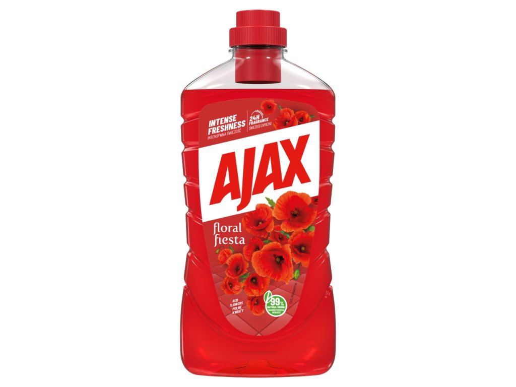 Ajax Aroma Sensations hinterlässt einen Duft, der bis zu mehreren Stunden in Ihrem Zuhause anhält. Perfekte Sauberkeit, strahlender Glanz und ein angenehm frischer Mohnduft halten auch am zweiten Tag nach der Reinigung an. Strahlende Sauberkeit: Ajax Tiefenreinigung hinterlässt Oberflächen auch ohne Abspülen strahlend sauber. Der neutrale pH-Wert schont empfindliche Oberflächen (Marmor, Keramik). Anwendung auf Böden im ganzen Haus, auf Oberflächen in Küche, Bad usw.