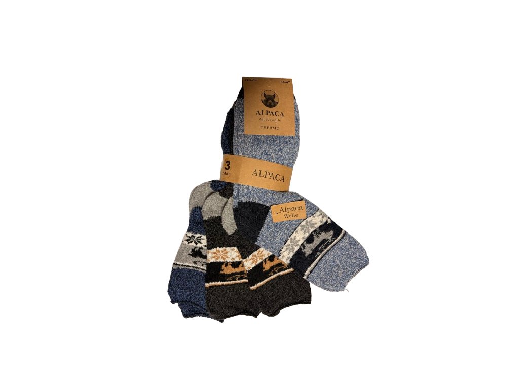 Alpaka-Herrensocken, warm und gemustert, 3 Paar, Größen 44-47