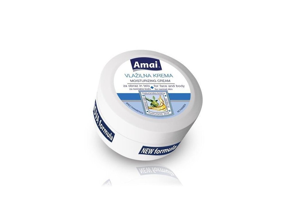 Amai Feuchtigkeitscreme für Gesicht und Körper. Geeignet für normale Haut. Nach dem Auftragen der Creme ist die Haut hydratisiert, regeneriert, genährt und fühlt sich weich an. Feuchtigkeitscreme für Gesicht und Körper. Spendet Feuchtigkeit, regeneriert, Anti-Aging. Für normale Haut. Enthält Jojobaöl, Hyaluronsäure, Shea- und Kakaobutter, Avocadoöl und Vitamin E.