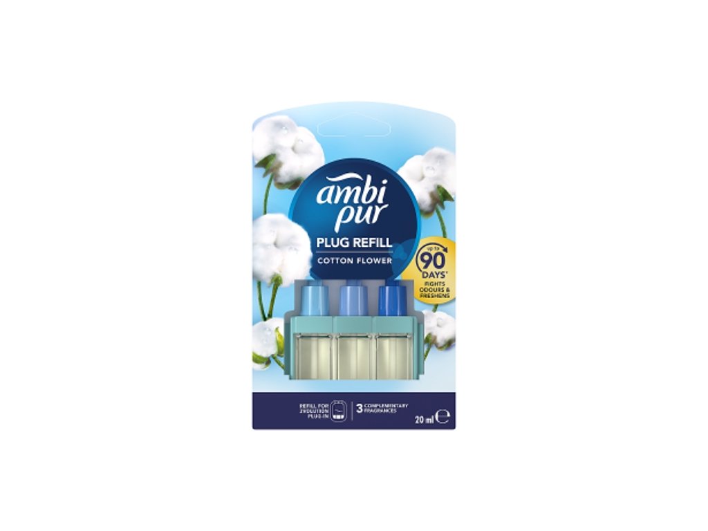 Der Nachfüller für den elektrischen Lufterfrischer Ambi Pur mit OdourClear-Technologie beseitigt kontinuierlich unangenehme, hartnäckige Gerüche und hinterlässt bis zu 80 Tage lang einen leichten, frischen Duft (bei 12-stündiger Verwendung pro Tag auf Stufe 2). Der Duft Cotton Fresh ist von der Frische reiner weißer Baumwolle inspiriert. Schaffen Sie die gewünschte Atmosphäre mit dem elektrischen Lufterfrischer Ambi Pur und einer großen Palette hochwertiger Düfte, die Gerüche wirklich beseitigen, damit Sie und Ihre Gäste eine angenehme Frische genießen können. Verwenden Sie Ambi Pur-Nachfüller nur mit dem separat erhältlichen Ambi Pur-Diffusor, um Ihr Zuhause mit Frische und einem Duft zu erfüllen, den Sie Tag für Tag, Woche für Woche spüren werden. Probieren Sie für sofortige Frische die gesamte Palette der neuen Ambi Pur-Produkte mit einzigartiger OdourClear-Technologie, wie den Textilerfrischer, den Lufterfrischer oder den Ambi Pur-Autoerfrischer.