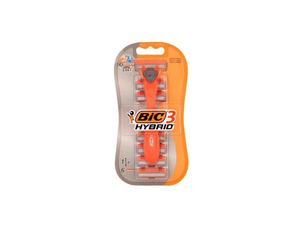 Der BiC 3Hybrid Herrenrasierer mit 6 Ersatzscherköpfen ist ein Klassiker unter den Rasierern. Das leistungsstarke 3-Kappen-System mit rotierendem Scherkopf in Kombination mit einem Feuchtigkeitsstreifen mit Aloe Vera und Vitamin E schützt die Haut vor Irritationen und versorgt sie während der Rasur intensiv mit Feuchtigkeit. Der breite Gummischutz spannt und bereitet die Haut zusätzlich vor, bevor die Klinge die Haare schneidet. Das geschwungene Design des orangefarbenen Griffs macht die Handhabung zum Kinderspiel. Eine Rasur, die Ihnen ein sicheres und stilvolles Gefühl gibt. Herrenrasierer von BiC bieten bewährte Qualität.