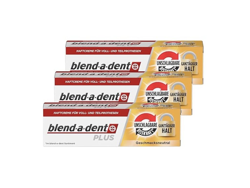 Blend-a-dent Original Complete ist eine geschmacksneutrale Haftcreme, die den Halt von Zahnprothesen verbessert und die Beißkraft um bis zu 63 % erhöht. Die Creme verhindert, dass Speisereste unter die Prothese gelangen. Sie fixiert die Prothese und bildet gleichzeitig eine weiche Unterlage, die das Zahnfleisch vor Reibung schützt.