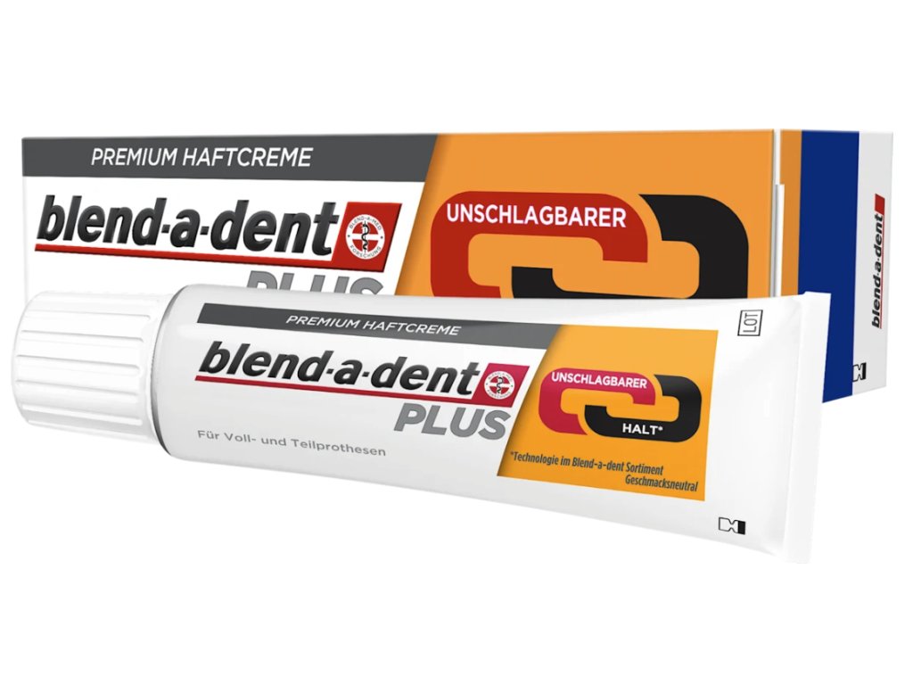 Blend-a-dent PLUS ist eine Premium-Haftcreme für Zahnprothesen , die den ganzen Tag über unübertroffene Festigkeit und Stabilität bietet. Dank ihrer fortschrittlichen, fluoridfreien Formel gewährleistet sie maximale Haftung, Komfort und Schutz, ohne den Geschmack zu beeinträchtigen oder das Zahnfleisch zu reizen.