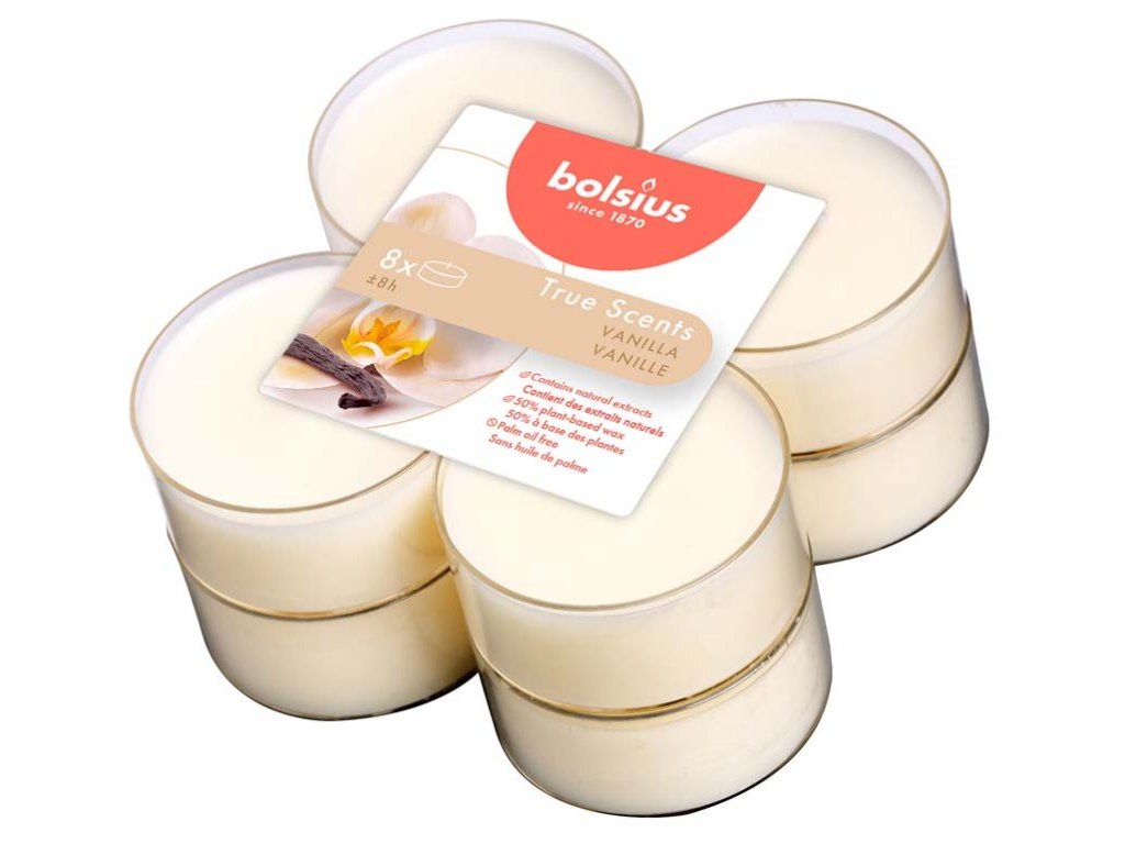 Bolsius Aromatic 2.0 Duftteelichter Maxi, 8 Stück, Vanille