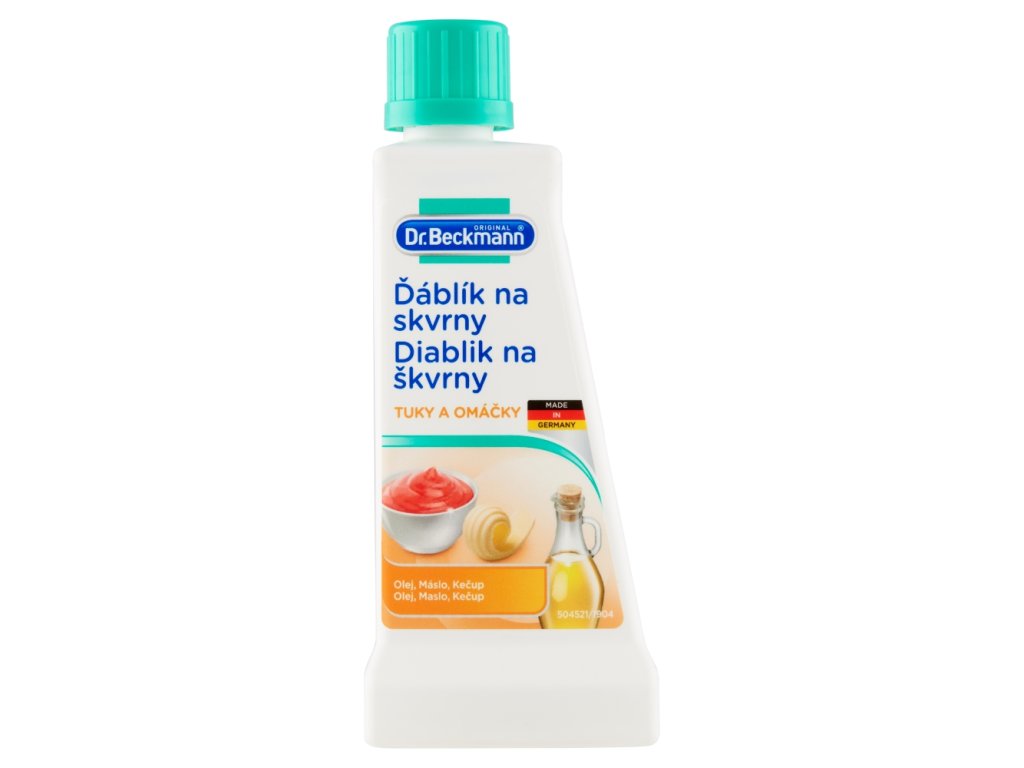 Manche Flecken unterschiedlicher Herkunft lassen sich aufgrund ihrer spezifischen Zusammensetzung nicht immer mit einem Universalprodukt entfernen. Deshalb gibt es die Dr. Beckmann Teufel, die gezielt wirken. Der Teufel für Fett- und Soßenflecken entfernt mühelos und effektiv den unliebsamen Fettfleck, der sich nach dem Mittagessen auf Ihrem T-Shirt gebildet hat. Er entfettet Speiseöle, Soßen, Ketchup, Schokolade, Mayonnaise oder Butter. Die Teufel sind für waschbare und nicht waschbare Textilien geeignet und schonen die Fasern Ihrer Kleidung.