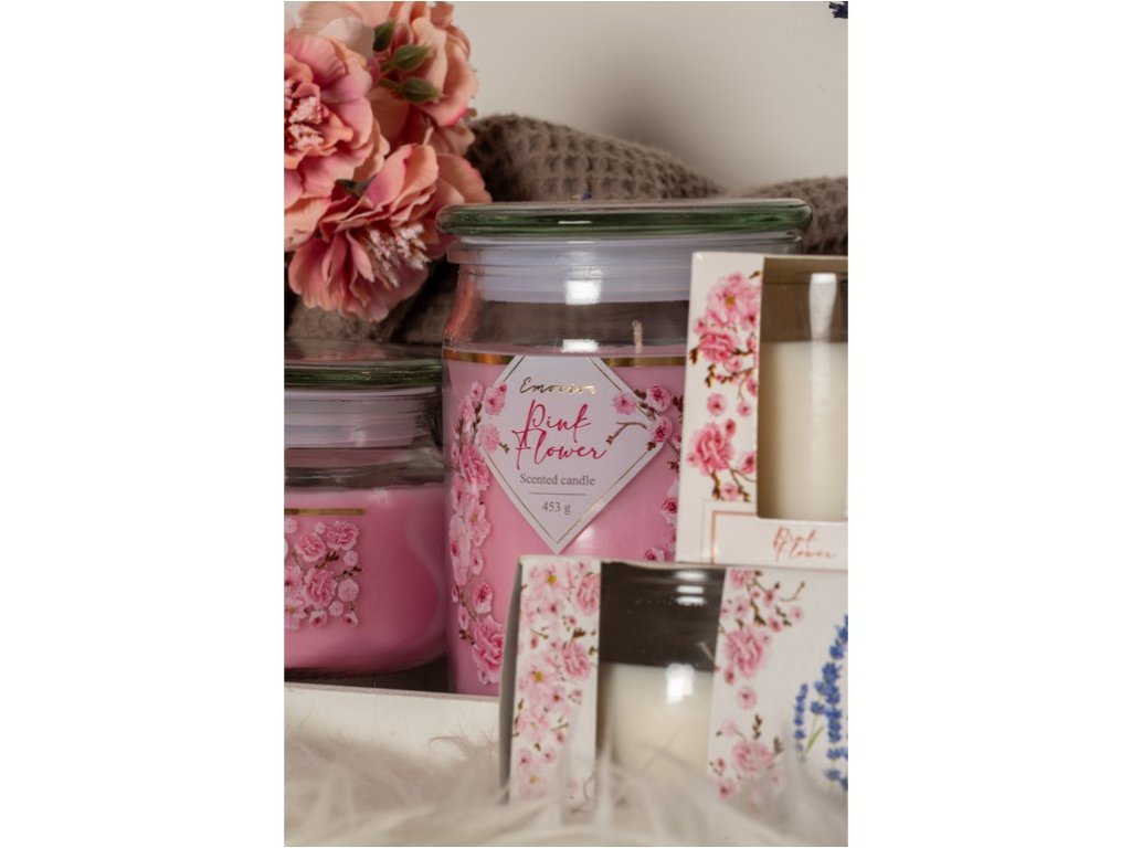 Emocio Glaskerze mit Glasdeckel, Duftkerze „Rosa Blume“, 93 x 142 mm