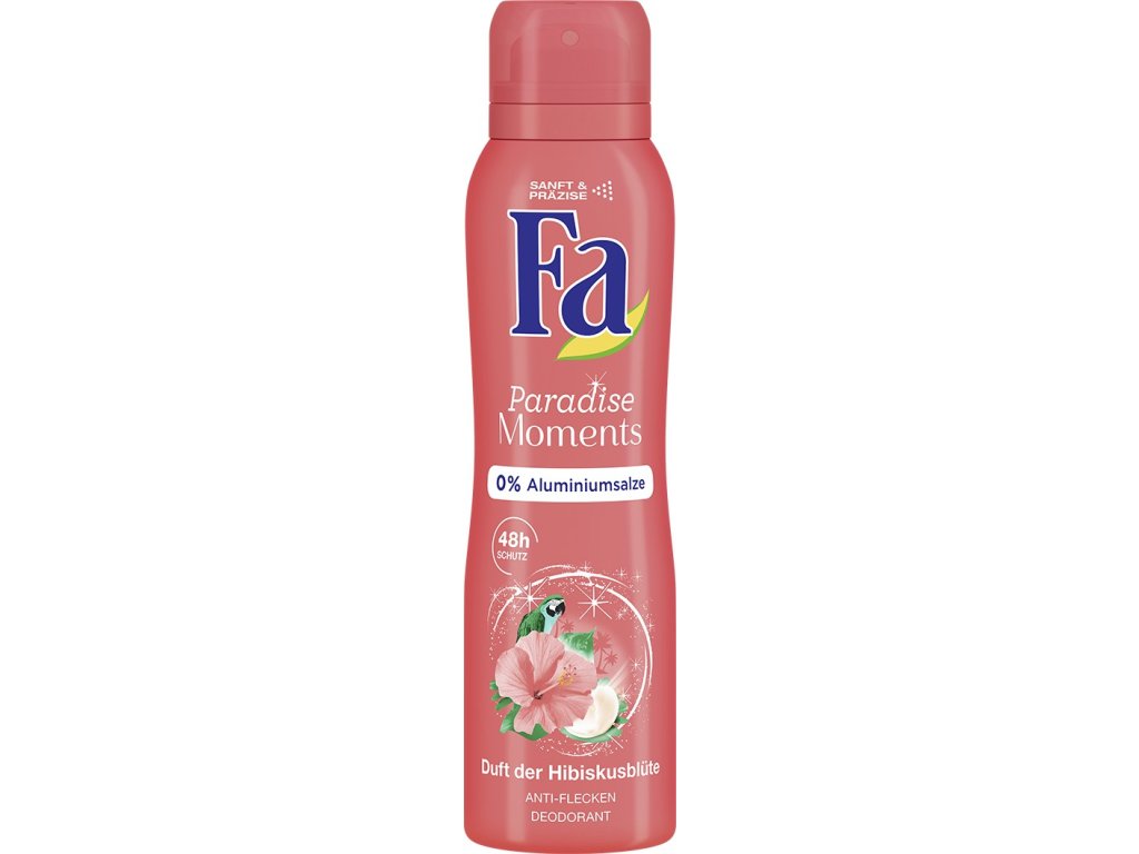 Entdecken Sie das Fa Paradise Moments Deodorant mit Hibiskusduft. Non-Stop Fresh-Technologie für bis zu 48 Stunden Deo-Schutz. Mit sanftem und präzisem Auftragungssystem. Ohne Aluminiumsalze.