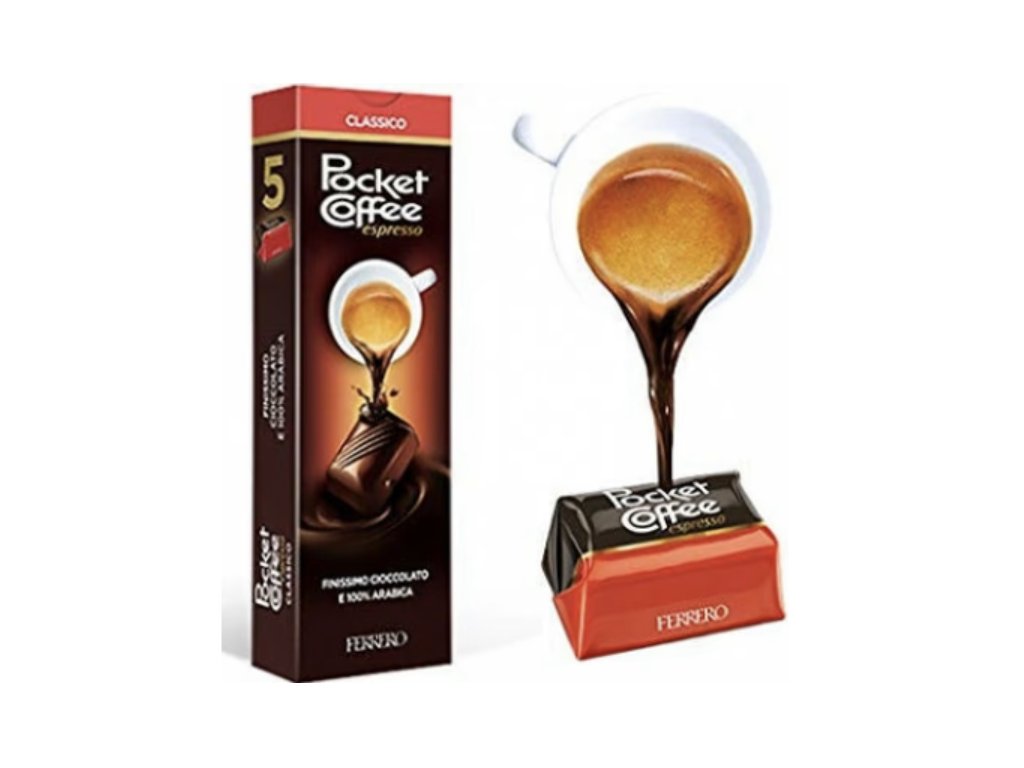 Gönnen Sie sich die Energie und den Geschmack italienischen Espressos im Taschenformat. Ferrero Pocket Coffee kombiniert flüssigen Espresso mit reichhaltiger dunkler Schokolade , die angenehm schmilzt und die vollen Kaffeenoten zur Geltung bringt. Jedes Stück ist ein kleiner „Kaffee-Kick“ – ideal für die Fahrt, bei der Arbeit oder während eines anstrengenden Tages. In einer 62-g -Packung (entspricht ungefähr einigen Pralinen) finden Sie die perfekte Balance zwischen Süße und intensivem Kaffeegeschmack.