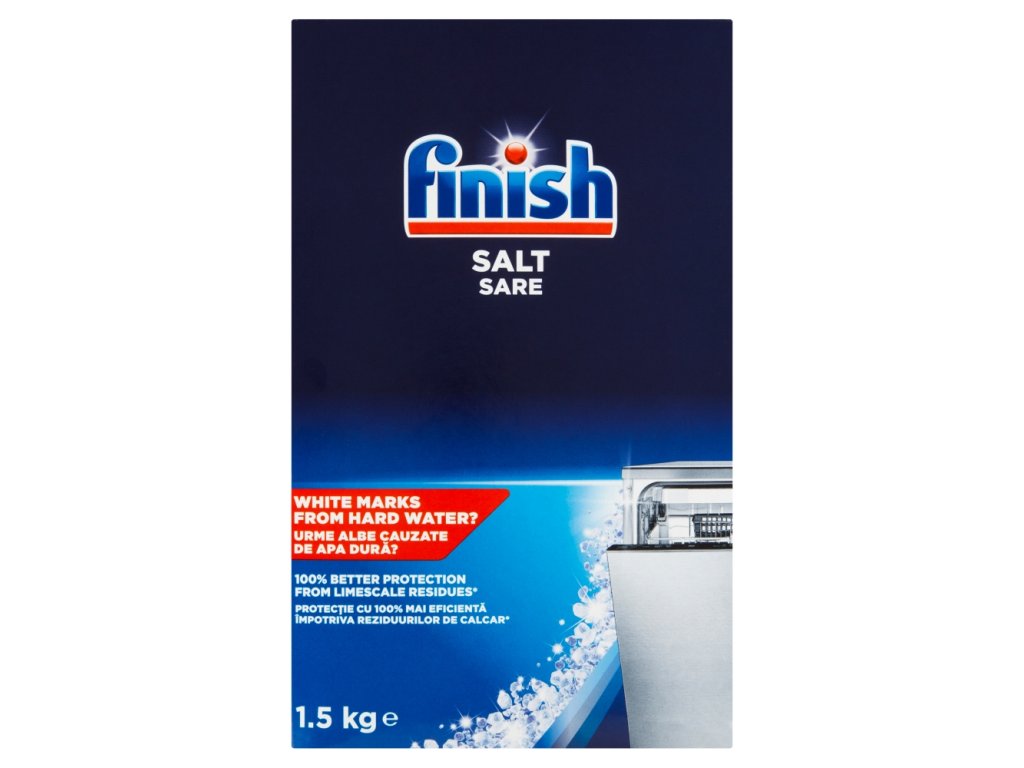 Es hilft effektiv, das Wasser in Ihrer Spülmaschine zu enthärten und erhöht so die Reinigungswirkung von Reinigungsmitteln. Für optimale Ergebnisse überprüfen Sie regelmäßig die richtige Menge Finish Regeneriersalz in Ihrer Spülmaschine. Dies wird dringend empfohlen, wenn Sie zu Hause hartes Wasser haben.
