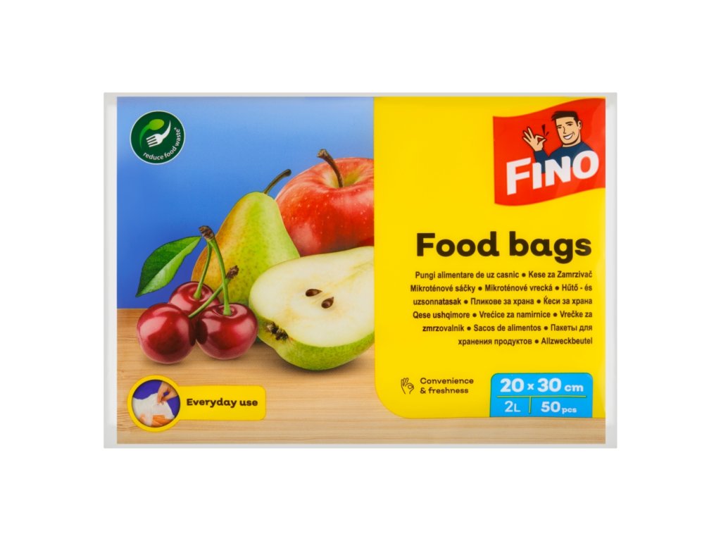 Praktische FINO Lebensmittelbeutel sind immer griffbereit. Die Packung enthält 50 Beutel mit den Maßen 20 × 30 cm, kompakt und sofort einsatzbereit. Sie eignen sich perfekt für Lebensmittel, die Sie im Kühlschrank aufbewahren oder als Snack für die Arbeit oder für die Schule Ihrer Kinder mitnehmen möchten. Die hauchdünnen Beutel bewahren die Frische von Lebensmitteln und schützen deren Geschmack und Aroma.