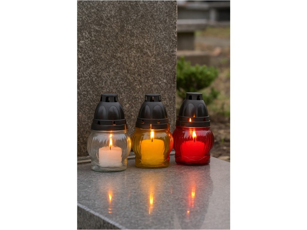 Das Glas bietet eine Brenndauer von bis zu 9 Stunden. Es eignet sich zur Verschönerung von Friedhöfen, Denkmälern und anderen letzten Ruhestätten. Der Durchmesser beträgt 14 cm.Zusätzliche Parameter