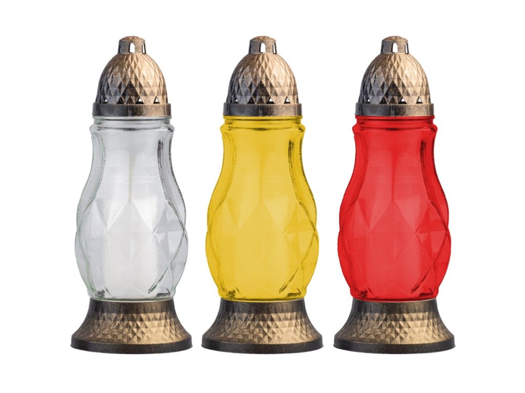Dieses Produkt eignet sich zur Verwendung auf Gräbern und Denkmälern. Es brennt bis zu 32 Stunden. Seine Abmessungen betragen 29 cm.