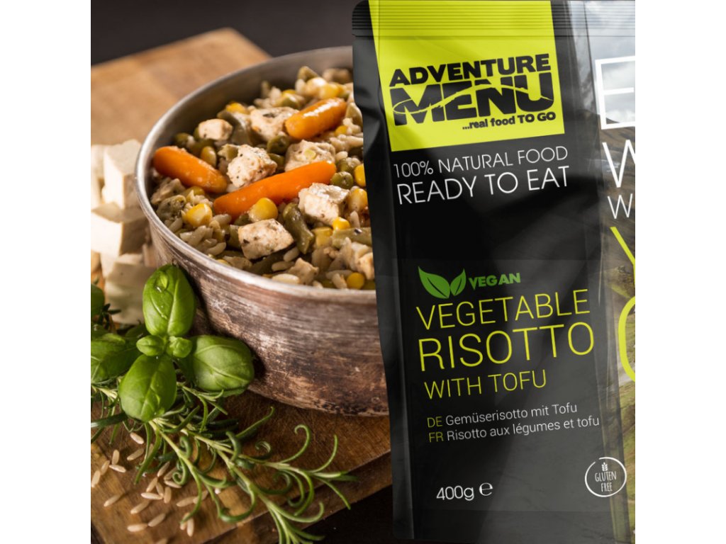 Gemüserisotto mit Tofu beweist, dass man auch auf Reisen und Abenteuern gesund und lecker essen kann. Dieses köstliche Gericht eignet sich perfekt für unterwegs, mehrtägige Wanderungen oder Campingausflüge. Es wird aus hochwertigen Zutaten zubereitet und gibt Ihnen neue Energie für Ihre Abenteuer. Der vorgekochte Reis behält seine Form und ist bissfest. Ergänzt wird er durch eine sorgfältig ausgewählte Mischung aus leckerem Gemüse wie Babykarotten, grünen Bohnen, Erbsen, Mais, Tomaten, Zwiebeln und Paprika. Auch der köstliche Tofu mit Nigari-Meersalz und das Aroma hochwertiger provenzalischer Kräuter werden Ihren Gaumen verwöhnen. Dieses Gericht wird nach traditionellem Rezept von Hand zubereitet und enthält keinerlei unerwünschte Zusatzstoffe.