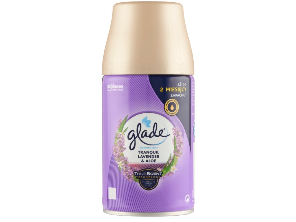 Der automatische Lufterfrischer „Lavendel & Aloe“ von Glade Automatic Spray beseitigt unangenehme Gerüche und sorgt bei einer 36-Minuten-Einstellung bis zu 60 Tage lang für einen frischen Duft. Ideal für größere Räume.