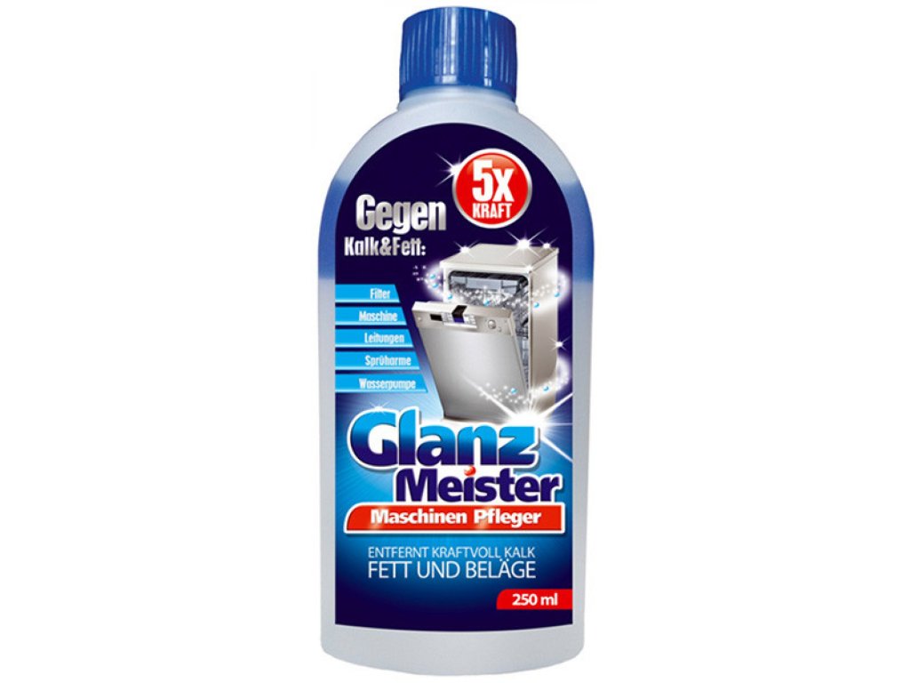 Glanz Meister Flüssig-Geschirrspülerreiniger 250 ml. Entfernt effektiv Fett und Kalk auch an unzugänglichen Stellen, die für die einwandfreie Funktion des Geschirrspülers unerlässlich sind. Regelmäßige Reinigung verlängert zudem die Lebensdauer des Geschirrspülers. Geeignet für alle Geschirrspülertypen.