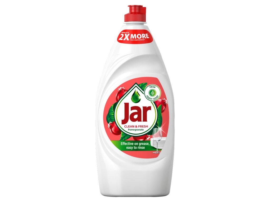 Jar ist ein konzentriertes Spülmittel zum Handspülen. Dank seiner wirksamen Zusammensetzung reicht eine kleine Menge für eine große Menge Geschirr. Es bildet einen lang anhaltenden Aktivschaum. Es entfernt mühelos Schmutz und Fett. Es duftet angenehm und ist sanft zu den Händen.