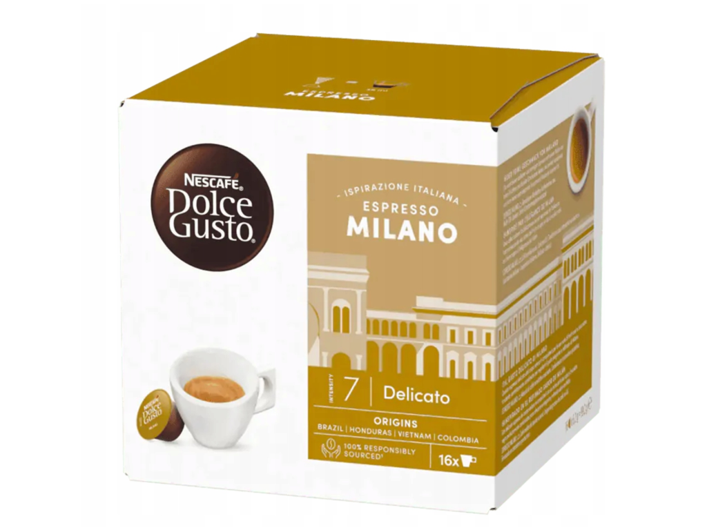 Nescafé Dolce Gusto Espresso Milano ist ein eleganter Espresso, inspiriert vom italienischen Stil Mailands. Er bietet einen ausgewogenen und mild-intensiven Geschmack, der sich ideal für den täglichen Genuss eignet. Der Kaffee wird aus einer Mischung hochwertiger Arabica- und Robusta-Bohnen hergestellt, was ihm ein harmonisches Geschmacksprofil mit einer feinen Bitterkeit und angenehmer Säure verleiht.