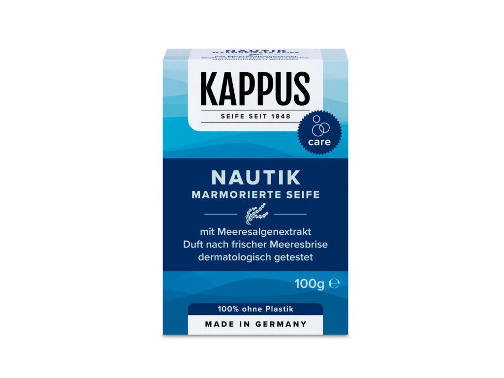 Gestreifte Toilettenseife mit Algenmineralien. Neue Verpackung!