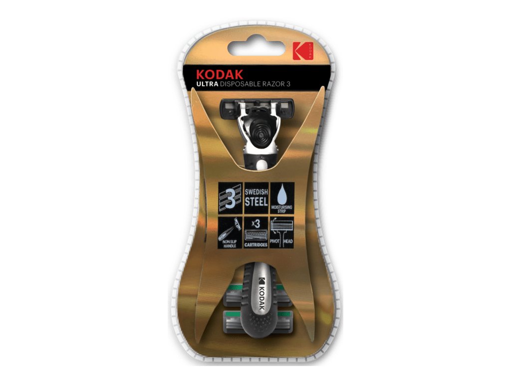 Dreiklingenrasierer mit auswechselbarem Komfortkopf. Flexible Klingen passen sich der Hautform an. Bio-Gleitstreifen mit Aloe Vera Extrakt und Vitamin E. • 3 Wechselköpfe • 3 Klingen • Schwenkkopf