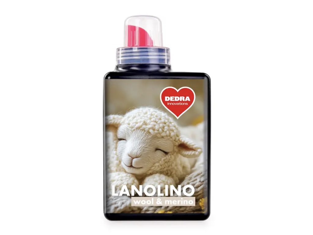 LANOLINO Wolle & Merino – ökologisches Waschgel zum Waschen von Wolle und Feinwäsche mit natürlichem Lanolin. Schützt die Fasern, verhindert Knittern und Austrocknen, macht Textilien weich und geschmeidig. Sanfte SENSITIVE-Formel, geeignet für Babys und Menschen mit empfindlicher Haut. Biologisch abbaubar.