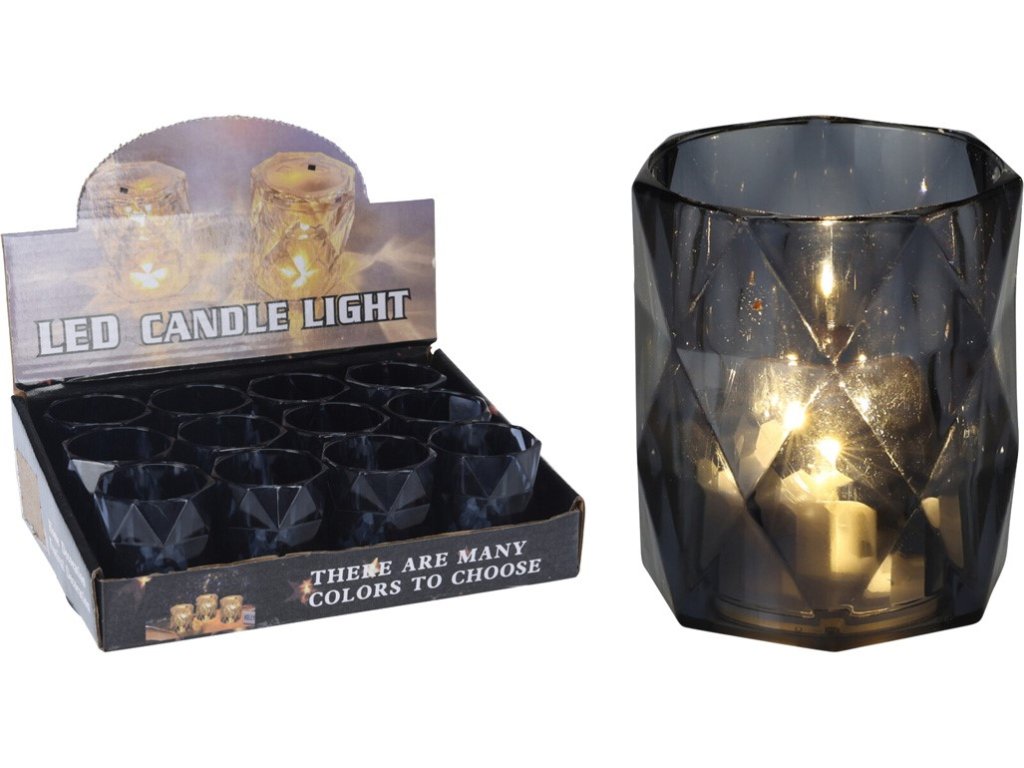 Graue LED-Kerze, ideal für sichere und langlebige Beleuchtung. Abmessungen: 47 x 57 mm.Zusätzliche Parameter