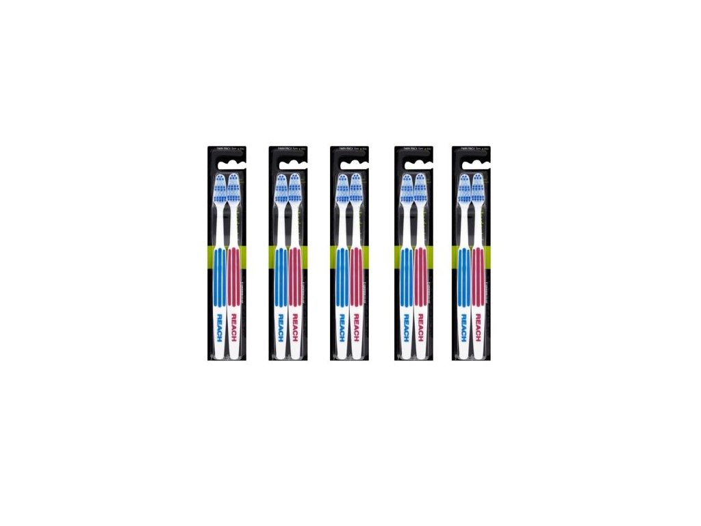 Die REACH Medium Doppelpackung Zahnbürsten sind für die effektive tägliche Reinigung der Zähne und schwer erreichbarer Stellen konzipiert. Ihre mittelharten Borsten mit verschiedenen Härtegraden helfen, Plaque zwischen den Zähnen und am Zahnfleischrand zu entfernen. Dank des gebogenen Bürstenhalses erreichen Sie auch die hinteren Zähne optimal. Der ergonomische Griff mit Gummielementen sorgt für einen komfortablen Halt und optimale Kontrolle beim Zähneputzen.