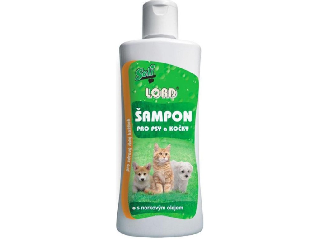 Veterinärshampoo für Hunde und Katzen. Das Produkt enthält eine Pflegespülung mit Nerzöl und ist für Welpen und Kätzchen geeignet. Das Shampoo verbessert die Qualität und das Aussehen des Fells und erleichtert das Kämmen auch langhaariger Rassen. Es verleiht dem Fell Glanz und natürliche Elastizität.