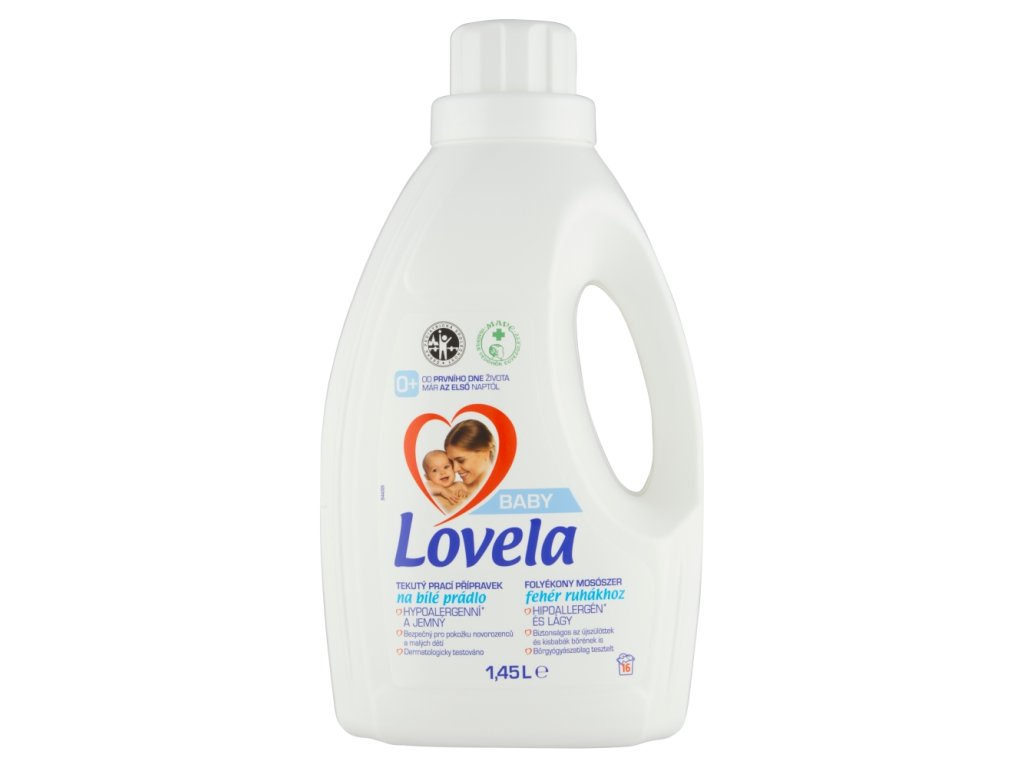 Das neue Lovela Gel 16 Waschdosen Baby White 1,45 ist ein Flüssigwaschmittel für weiße Wäsche, entwickelt für Ihre kleinen Kinder ab 0 Jahren. Lovela wäscht Ihre gesamte Wäsche perfekt, aber gleichzeitig so schonend, dass es auch zum Waschen der Wäsche von Kindern mit sehr empfindlicher Haut verwendet werden kann. Geeignet für Menschen mit empfindlicher Haut und für Allergiker. Lovela wurde für empfindliche Kinderhaut getestet und wird vom „Institut für Mutter- und Kinderpflege“ und der „Kindergesundheitsvereinigung“ – einer Vereinigung zur Unterstützung von Kindern mit Allergien – empfohlen. Für schön saubere Wäsche für Ihr Kind. Sehr sanft und empfindlich und dennoch effektiv. Für alle Arten von Waschmaschinen und zum Handwaschen. Effektive Waschtemperatur von 30 °C bis 60 °C. Dermatologisch und klinisch getestet.