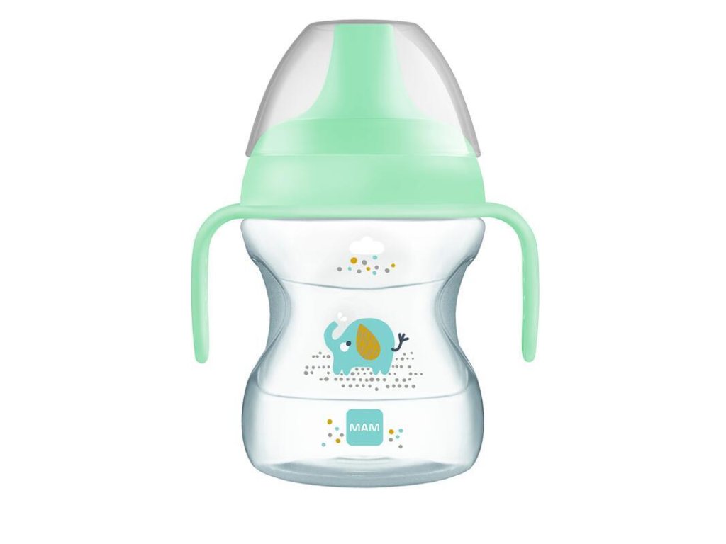 Einfacher Übergang von der Flasche zum Becher Der MAM Learn to Drink Cup unterstützt Kinder dabei, selbstständig trinken zu lernen. MAMs patentiertes Ventilkonzept – der auslaufsichere Becher lässt sich ganz einfach in einen frei fließenden Becher umwandeln. Der auslaufsichere oder frei fließende Becher – passt sich immer perfekt den Fähigkeiten und Bedürfnissen des Kindes an. Die rutschfesten Griffe sind speziell für kleine Kinderhände entwickelt und ermöglichen ein gutes Halten. Der Becher ist weich und daher ideal für den Übergang vom Stillen oder der Flasche zum Becher. Der Becher hat einen weiten Hals für einfaches Befüllen und einfaches Reinigen. Der Becher ist spülmaschinenfest. Becher und Griffe sind für alle MAM Becher geeignet. Alle MAM Produkte werden aus BPA- und BPS-freien Materialien hergestellt.Zusätzliche Parameter