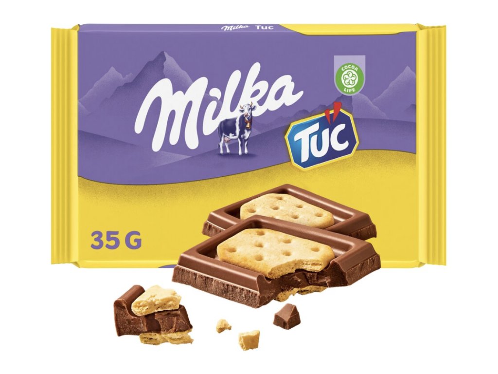 Süß-salziges Erlebnis : weicher Milka + knusprige TUC-Cracker.