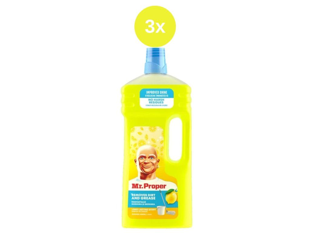 Mr. Proper Lemon ist ein Universalreiniger, der sich ideal für die tägliche Reinigung des gesamten Haushalts eignet. Er entfernt effektiv Fett, Schmutz und eingetrockneten Schmutz und hinterlässt streifenfrei saubere und glänzende Oberflächen. Dank seines frischen Zitronenduftes sorgt er zudem für einen angenehmen Raumduft.