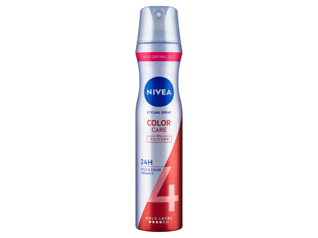 Nivea Color Care & Protect Haarspray fixiert die Frisur intensiv und schützt die Farbe bis zu 24 Stunden . Es hat eine besondere pflegende Wirkung , die das Haar nicht austrocknet und ihm Kraft verleiht. Nivea Color Care & Protect Haarspray bewahrt den strahlenden Glanz Ihrer Farbe und lässt sich leicht auskämmen.