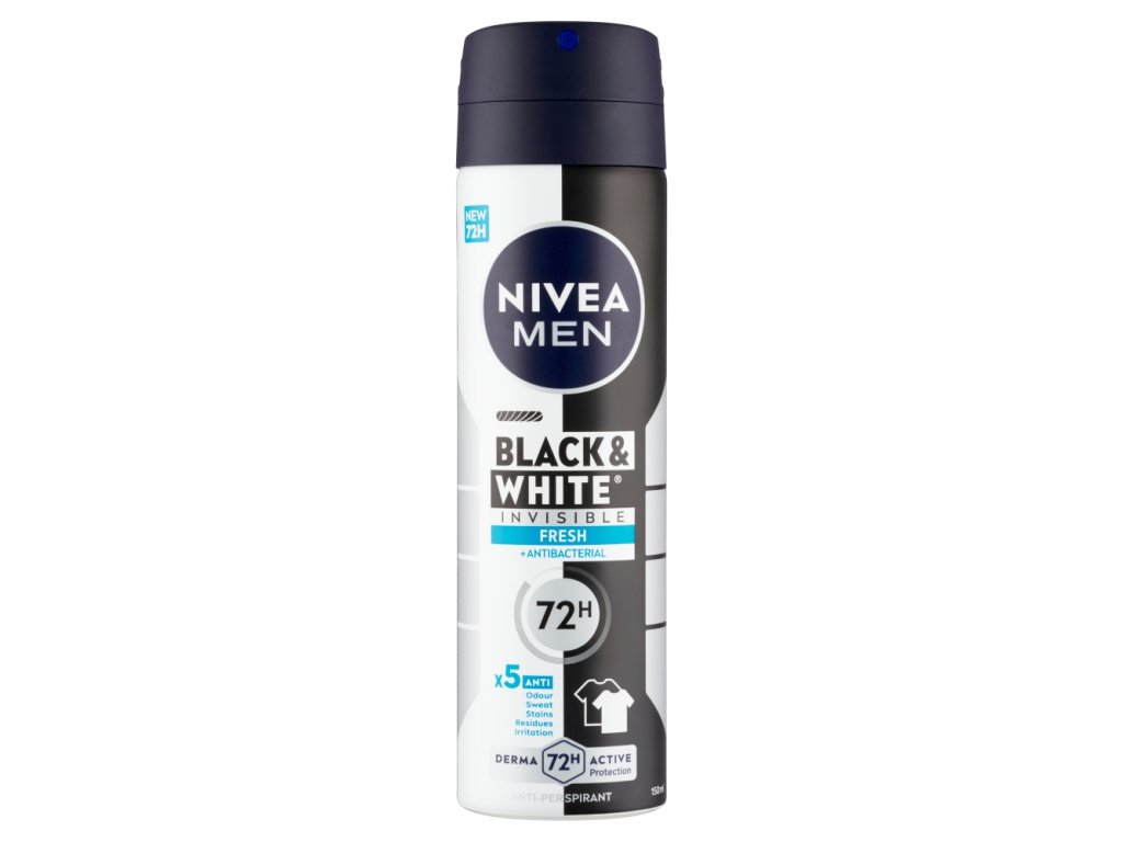 Genießen Sie langanhaltende Frische mit effektivem Schutz vor Schwitzen und der Entstehung von weißen und gelben Flecken auf der Kleidung. Alkoholfrei und mit einem unwiderstehlichen Duft für alle Männer. Testen Sie die wirksame Pflege – NIVEA MEN Black & White Invisible Fresh Antitranspirant-Spray für Männer.