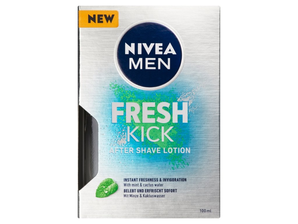 Die weltweite Nr. 1 Marke für Aftershave-Pflege*. Auch Männer wünschen sich schöne Haut . Pickel, Rötungen und Juckreiz tragen definitiv nicht zum Selbstbewusstsein bei. Entweder setzen Sie auf das übergroße Image des harten Kerls oder greifen zu passender Pflegekosmetik. Aftershave mit Minzextrakten und Kaktuswasser spendet Ihrer Haut bis zu 24 Stunden Feuchtigkeit und beugt Irritationen vor . Kaktuswasser hilft zudem , vorzeitiger Hautalterung vorzubeugen . Setzen Sie auf Frische: NIVEA Fresh Kick Aftershave.