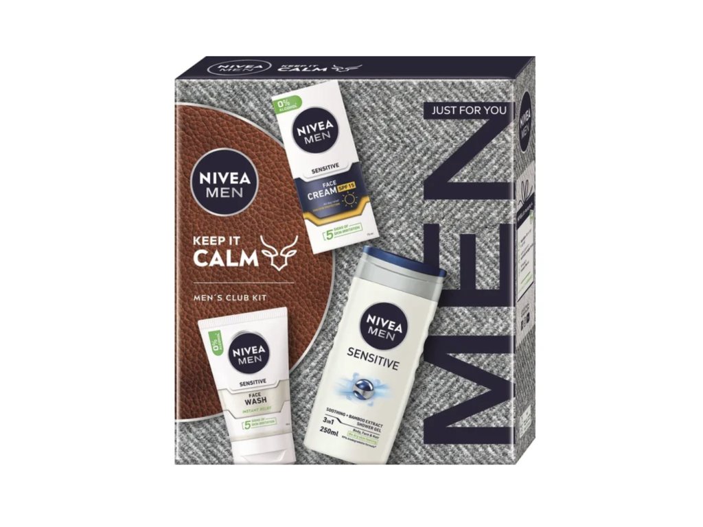 Verleihen Sie ihm die Geheimnisse einer Hautpflegeroutine, die jede Haut verdient. Das NIVEA MEN Geschenkset für echte Gentlemen ist für alle gedacht, die ein frisches Gefühl nach dem Duschen, weiche Haut ohne Irritationen und ein selbstbewusstes Gefühl mögen. Motivieren Sie Ihren Mann, seine Haut morgens und abends mit einem Reinigungsgel zu reinigen, dessen zarter Schaum alle Unreinheiten entfernt und empfindliche Haut beruhigt. Nach dem Abtrocknen empfehlen wir die morgendliche Anwendung der Sensitive Hautcreme mit Lichtschutzfaktor 15. Die Creme schützt die Haut vor Sonnenstrahlen, die auch im Winter aggressiv sein können. Das Sensitive Duschgel für Körper, Gesicht und Haar enthält Bambusextrakte und erfrischt den Körper nach dem Sport oder während der morgendlichen Dusche wunderbar.
