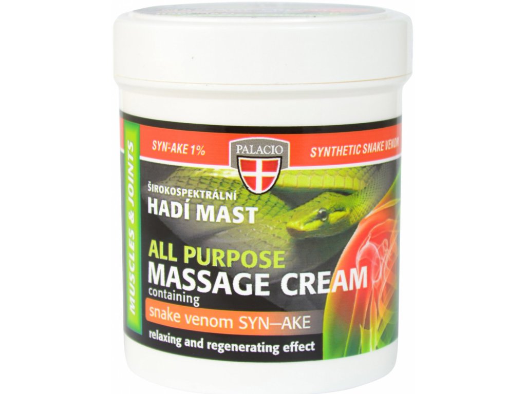 Breitbandsalbe mit synthetischem Schlangengift SYN-AKE, das eine ähnliche Wirkung wie Waglerin 1 hat, ein Peptid aus dem Gift der Waglerschen Klapperschlange (Tropidolaemus wagleri). Die Massage der Haut mit Schlangensalbe löst Muskelverspannungen und wirkt stark entspannend und regenerierend, glättet Mimikfalten und korrigiert kleinere Hautdefekte.