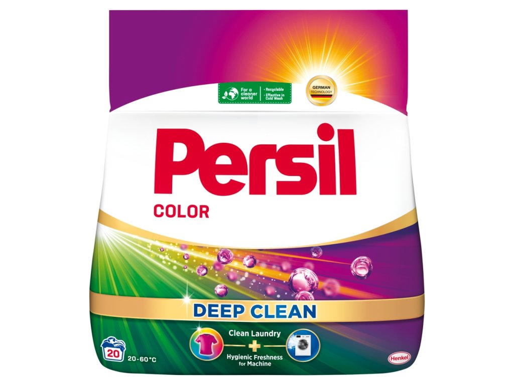 Persil Color Waschpulver – Freuen Sie sich mit jedem Waschgang über perfekt saubere Wäsche und leuchtende Farben. Das Waschpulver für Buntwäsche erhält die Leuchtkraft der Farben, bietet gleichzeitig eine hervorragende Reinigungsleistung und verleiht Ihrer Waschmaschine dank einer neuen Formel hygienische Frische. Unsere Formel in diesem Buntwäschepulver wurde entwickelt, um die Farben leuchtend zu erhalten und selbst hartnäckigste Flecken zu beseitigen. Ein Waschmittel, das effektiv gegen Flecken wirkt, kann Farben schonen. Das konzentrierte Waschmittel sorgt nicht nur für frische Kleidung, es wirkt auch tiefer in der Waschmaschinenmechanik und entfernt effektiv unangenehme Gerüche. Für eine sauberere Welt: Fleckenresistent und umweltfreundlich, enthält die Formel 92 % biologisch abbaubare Inhaltsstoffe* und wird in 100 % recycelbaren Verpackungen hergestellt. Wirksam bei niedrigen Temperaturen – Kaltwäsche startet bei 20 °C, um bei jedem Waschgang Energie zu sparen. Persil setzt sich heute und in Zukunft für eine gründliche Reinigung Ihrer Wäsche ein und ist gleichzeitig umweltfreundlich. Sparen Sie Energie mit der leistungsstarken Persil Deep Clean-Formel, die selbst bei voller Waschmaschine und niedrigen Temperaturen effektive Ergebnisse liefert. Wichtige Produktvorteile: Reinigt die Wäsche gründlich und erhält leuchtende Farben Dringt tiefer in die Waschmaschinenmechanik ein und entfernt unangenehme Gerüche 100 % recycelbare Verpackung und 92 % biologisch abbaubare Inhaltsstoffe* Das Waschmittel ist auch bei voller Waschmaschine wirksam Sparen Sie Energie durch Waschen bei niedrigen Temperaturen ab 20 °C * Gilt für Bio-Inhaltsstoffe gemäß OECD 301/302