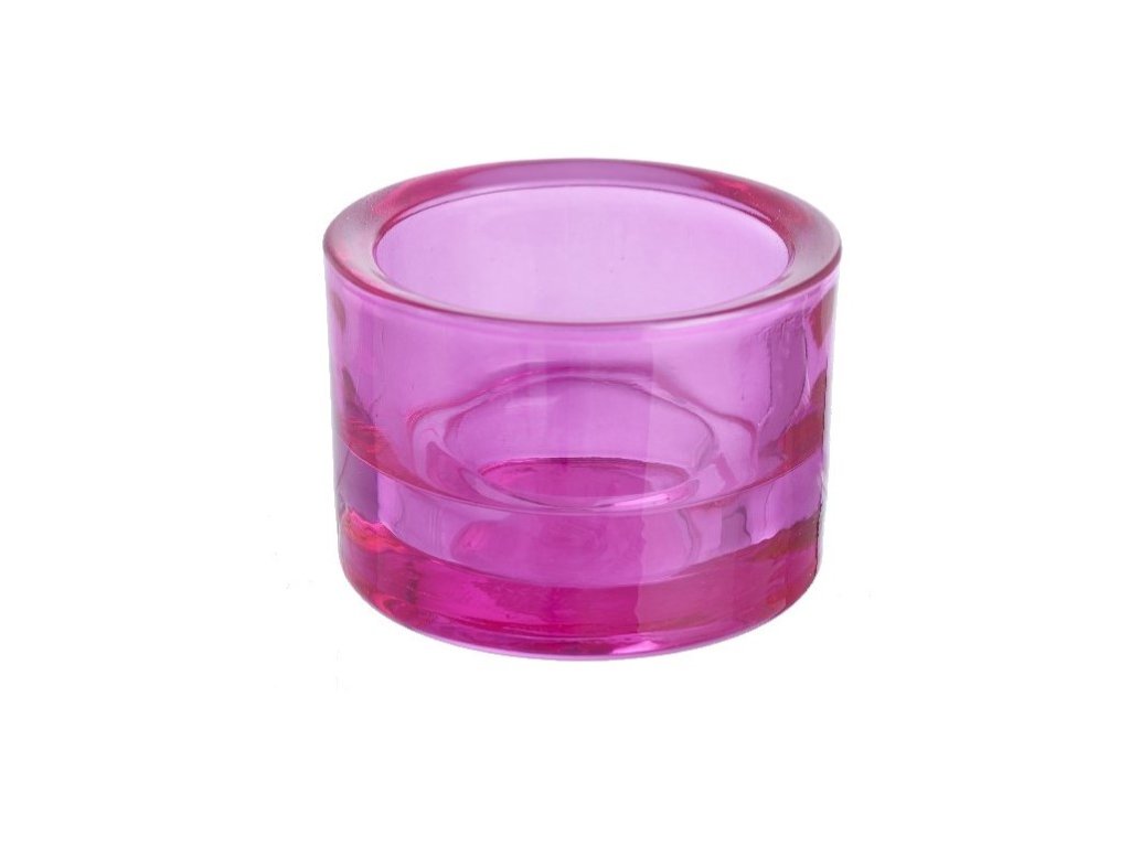 Rosafarbener Glaskerzenhalter für Teelichter, 57 x 83 mm