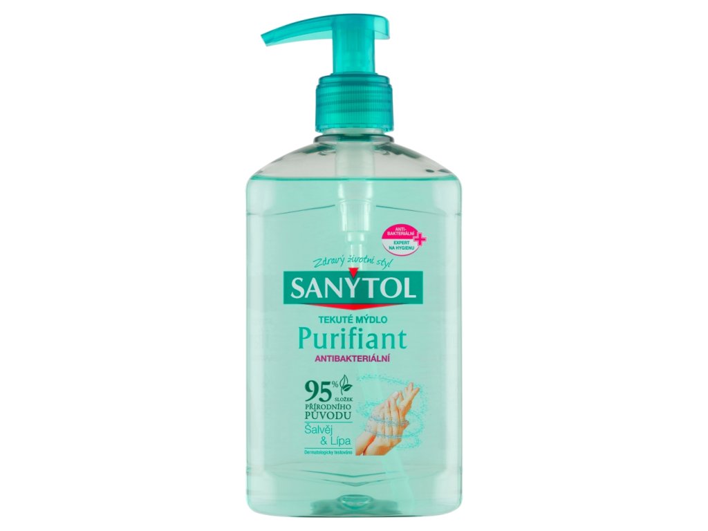 Die meisten Infektionskrankheiten werden über die Hände übertragen. Regelmäßiges Händewaschen ist daher der einfachste Weg, Infektionen vorzubeugen. Die antibakterielle Seife SANYTOL, dermatologisch getestet, hat eine hypoallergene Zusammensetzung und ist angereichert mit Linden- und Salbeiextrakte.