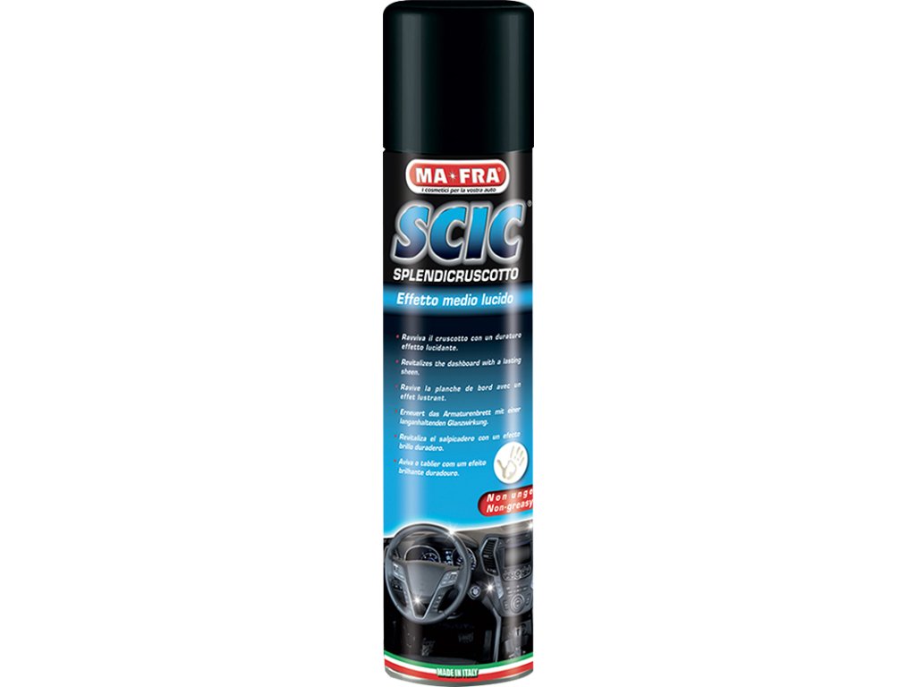 MA-FRA – SCIC BLUE 600 ml – Cockpitspray, mittelglänzend – Das Produkt frischt den Glanz der Kunststoffoberflächen im Cockpit auf und frischt die Farben auf. Hinterlässt einen mittelglänzenden Effekt.