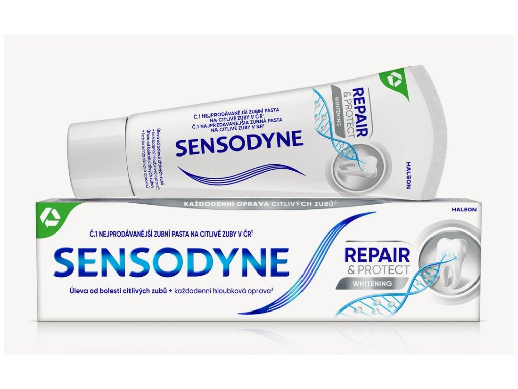 Sensodyne Repair & Protect Whitening ist eine Zahnpasta, die Schmerzlinderung* und langanhaltenden Schutz für empfindliche Zähne bietet.
