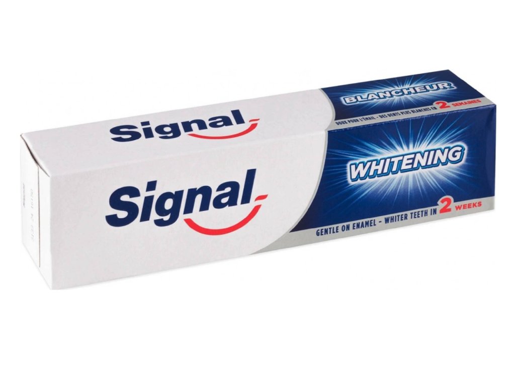 Die wirksame Formel der Signal White Zahnpasta mit Natriumbicarbonat hilft sanft, das natürliche Weiß der Zähne Ihrer Familie wiederherzustellen. Der Fluoridgehalt stärkt den Zahnschmelz und die Zähne sind besser vor Karies geschützt. Die Paste ist speziell für die tägliche Anwendung durch die ganze Familie konzipiert.