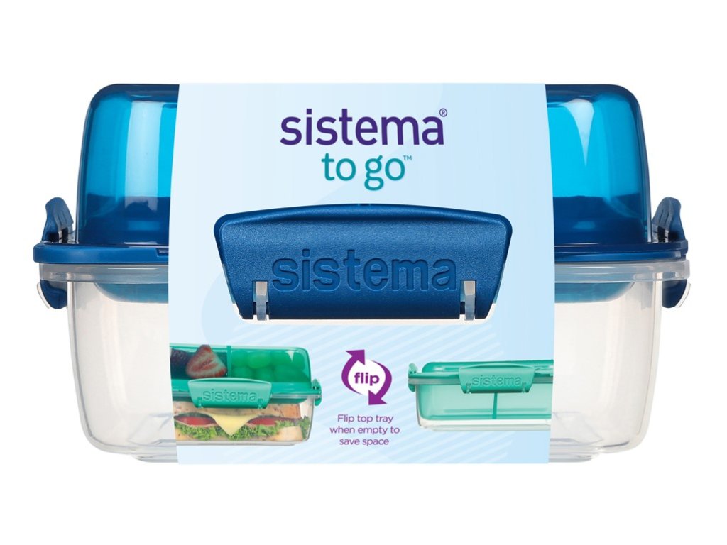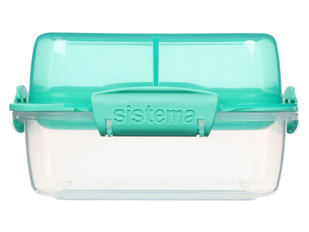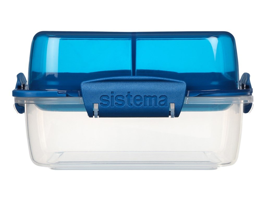 Die praktische und stylische Sistema Flip and Nest Lunchbox (1,24 l) ist ideal für alle, die unterwegs gesunde und leckere Mahlzeiten genießen möchten. Die Box besteht aus robustem Kunststoff und verfügt über zwei separate Fächer zur Trennung verschiedener Lebensmittel. Vorteile: Reduziert den Verbrauch von Plastiktüten und Alufolie; zwei separate Fächer zur Lebensmitteltrennung; innovatives Design für platzsparende Aufbewahrung; leicht zu verschließende Clips und flexible Dichtung.Zusätzliche Parameter