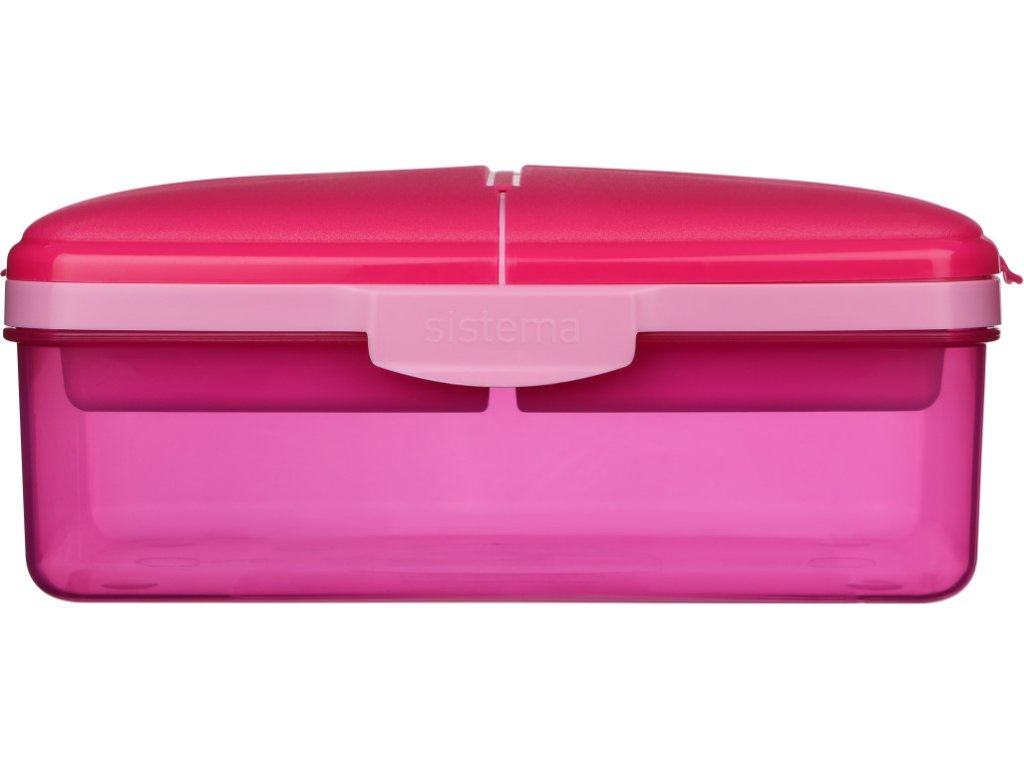 Sistema Lunch Quaddie 1,5 l Snackbox mit drei Fächern im Deckel und einer Trinkflasche, rosa
