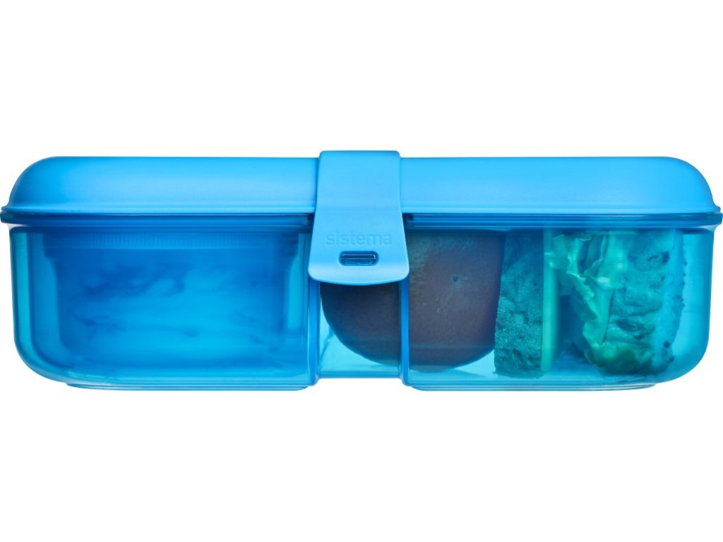 Sistema Lunch Ribbon Unterteilte Snackbox mit Joghurtbehälter 1,1 l, Blau