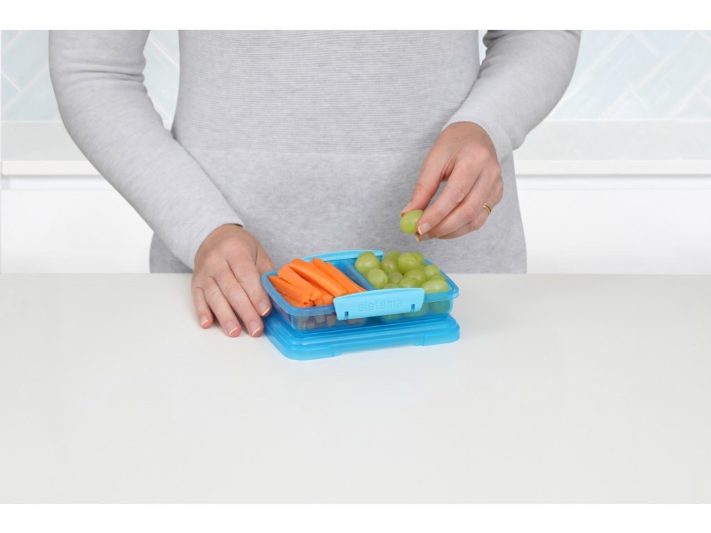 Dank ihrer separaten Fächer und des modularen Designs eignet sich diese Box ideal zum Transportieren und Aufbewahren verschiedenster Lebensmittel. Durch die separaten Fächer und die einfache Reinigung ist sie perfekt für den täglichen Gebrauch. Vorteile: • Ideal für Kinder • Separate Fächer • Modulares Design • Einfach zu verschließen: Sistema®-Clip und elastische DichtungZusätzliche Parameter