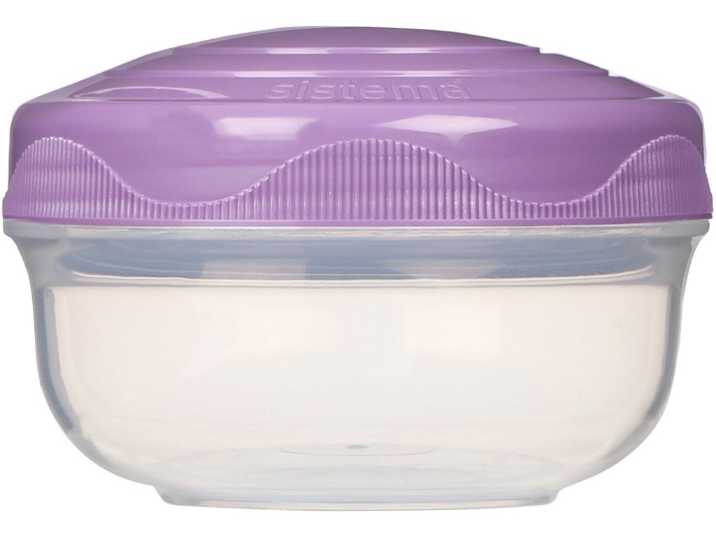 Die praktischen Sistema-Becher mit 210 ml Fassungsvermögen, erhältlich im 2er-Set, eignen sich perfekt zum sicheren Transportieren kleinerer Portionen Obst, Salat, Soße oder anderer Leckereien. Die Becher sind eine ideale Ergänzung für klassische Snackboxen. Vorteile: • Leicht zu öffnender Schraubverschluss, absolut dicht • StapelbarZusätzliche Parameter