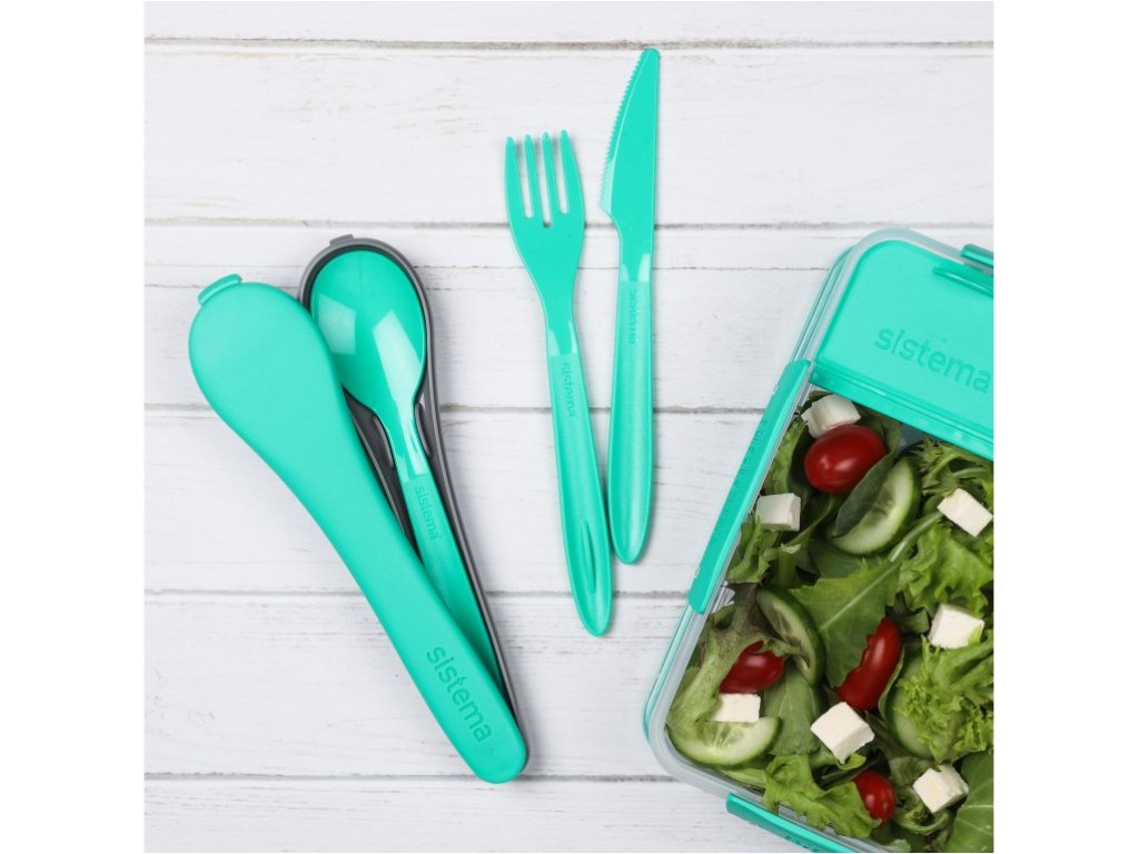 Das Sistema Besteckset ist ein praktischer und kompakter Helfer für alle, die unterwegs oder im Büro stets Besteck griffbereit haben möchten. Dank des robusten Etuis und der einfachen Reinigung ist das Set ideal für den täglichen Gebrauch. Vorteile: • Das robuste Etui schützt das Besteck vor Beschädigungen und hält es sauber. • Kompaktes Design: Das Besteck lässt sich einfach zusammenstecken und nimmt in Rucksack, Handtasche oder Tasche nur minimalen Platz ein.Zusätzliche Parameter