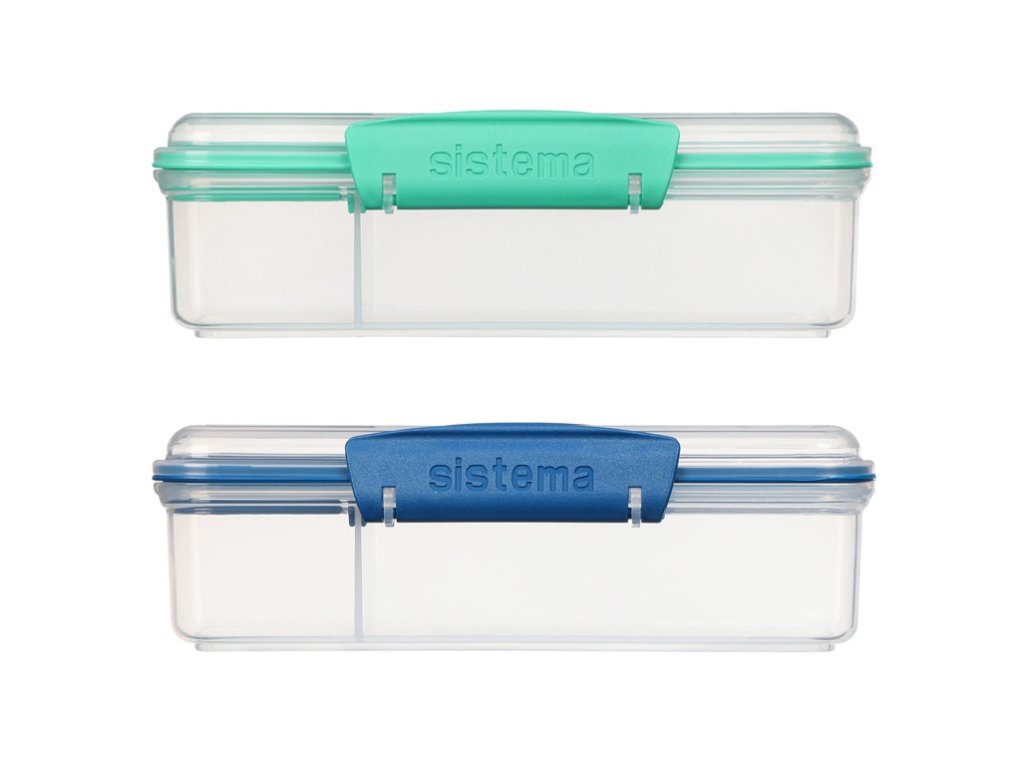 Die Sistema Lunchbox mit separatem Fach (410 ml) ist eine praktische Lösung mit zwei separaten Fächern für die Zubereitung leckerer Snacks und Mittagessen – nicht nur für unterwegs. Gleichzeitig tragen Sie dazu bei, den Verbrauch von Plastiktüten und Alufolie zu reduzieren. Die Box besteht aus robustem Kunststoff und verfügt über leicht zu verschließende Clips sowie einen flexiblen Verschluss, der die Frische bewahrt. Vorteile: Geeignet für Kinder, leicht zu verschließender Clip und Klappdeckel, zwei separate Fächer für Snacks.Zusätzliche Parameter