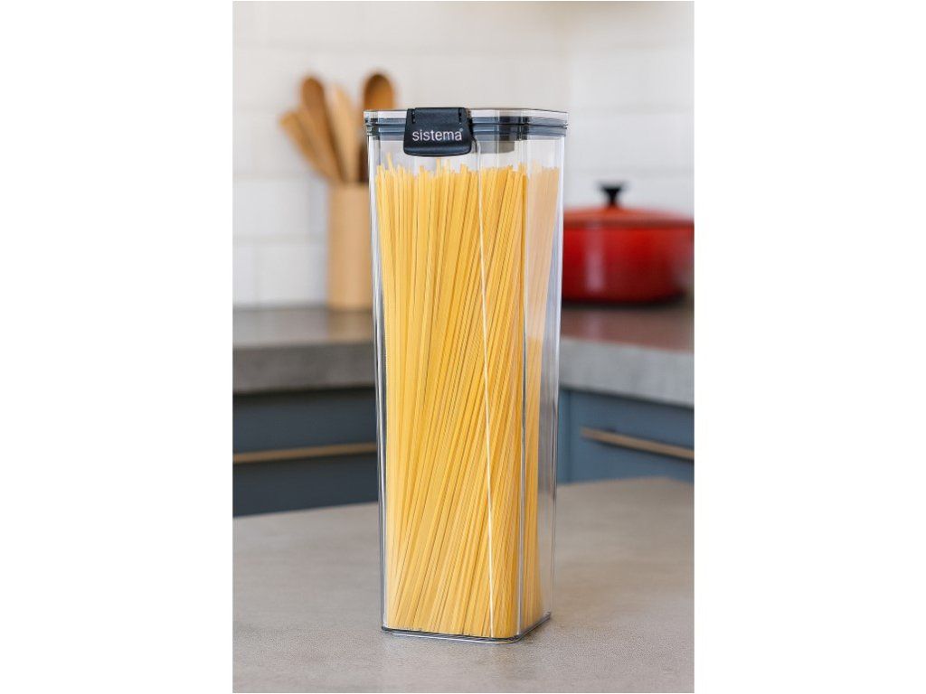 Das hochtransparente Plastik mit glasähnlicher Transparenz ermöglicht eine optimale Sicht auf den Inhalt. Robust und bruchfest. Platzsparend stapelbar für eine effiziente Küchenorganisation. Die einfach zu bedienenden Sistema-Clips und der luftdichte Verschluss halten den Inhalt frisch. Teil der quadratischen Serie (114 x 102 mm).Zusätzliche Parameter